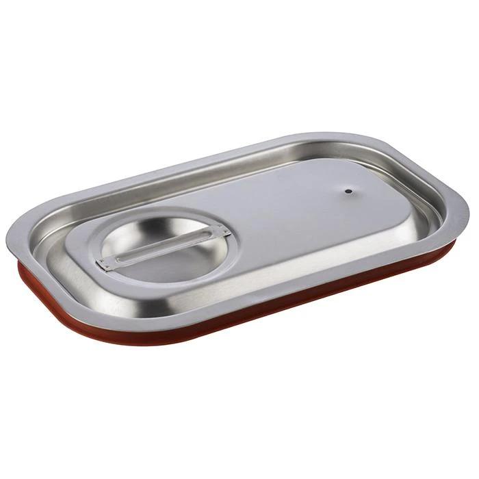 Ein praktischer Deckel für die GN Behälter, welche für ihre Küche, für Großküchen, die Gastronomie und für den privaten Haushalt geeignet sind. Der Deckel hat einen praktischen Griff, eine Griffmulde und ein kleines Loch um Unterdruck zu vermeiden. Mit dem Silikonrand an der Seite, der Silikondichtung am Rand, schließt der Deckel optimal mit dem Behälter ab. Alle Materialien sind aus Edelstahl, langlebig und einfach und leicht zu reinigen.