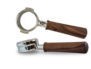 Bodenloser Siebträger aus Edelstahl mit Holzgriff aus Walnussholz für die Ascaso Dream, Steel, Bar, Baby T, Barista T und Big Dream T