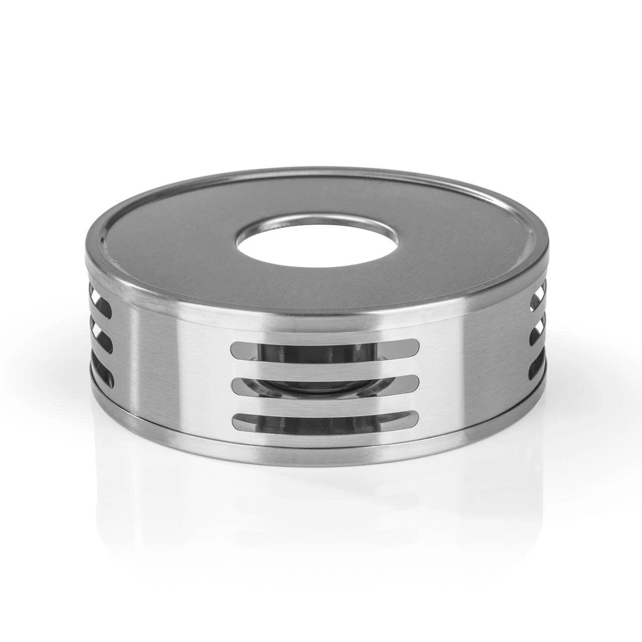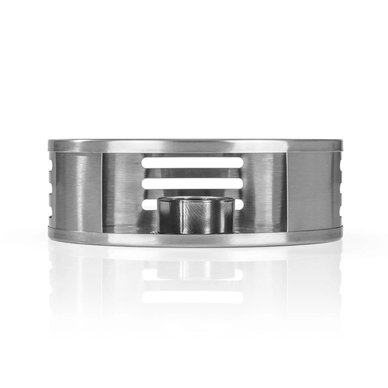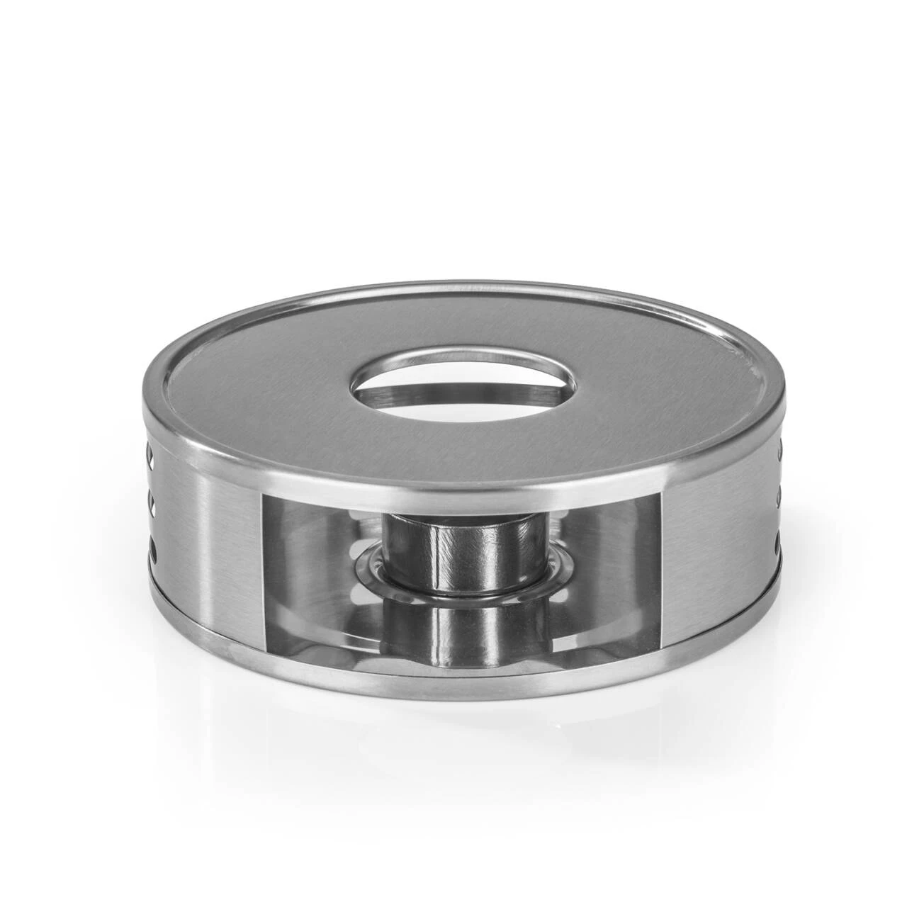 Der Kannenwärmer zum Warmhalten von Teekannen, Kaffeekannen und Kannen aus Glas mit einem Durchmesser von 7-14 cm. In die seitliche Öffnung können sie ein handelsübliches Teelicht einsetzen, mit dem fixierten Teelichthalter bleibt dieses an seinem Platz. Das Teelicht erwärmt die Kanne und hält das Heißgetränk lange warm. Das Stövchen ist aus Edelstahl und kann durch abwischen einfach und leicht gereinigt werden.