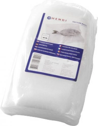 Vakuumbeutel für Hendi Vakuumiergeräte. Die Vakuum-Kochbeutel sind geprägt und 2-lagig. Material: lebensmittelechtes Polyethylen. Durch die Prägung des Materials wird der Luftstrom während des Vakuumverpackungsprozesses verbessert. Die Beutel sind für Temperaturen von -20° C – 100° C und für Kammer- und externe Vakuumverpackungsmaschinen geeignet. Hendi Nummer: 971017. Maße: 15×25 cm, Inhalt: 100 Stück.