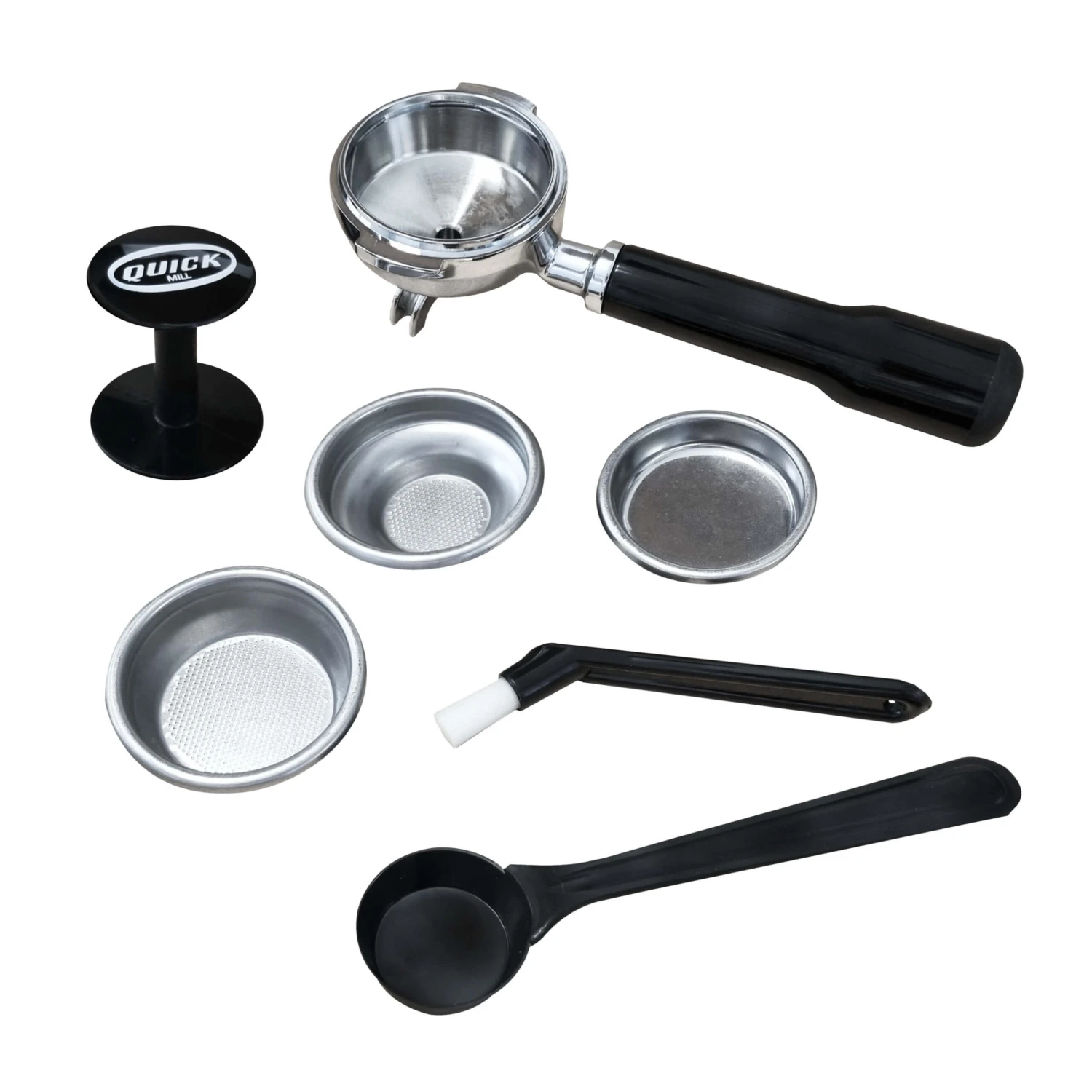 - Zubehör: Siebträger mit Doppel Auslauf, 1er und 2er Sieb, Blindsieb, Plastiktamper, Kaffeelöffel, Reinigungspinsel